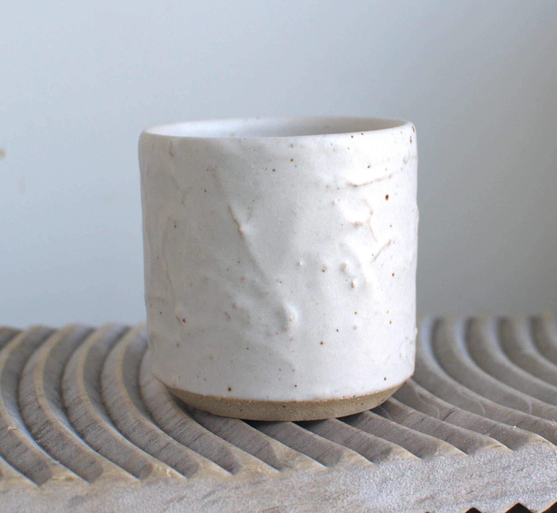 Hand thrown by talented ceramicist Polly of Bliss Mill Studio, this beautiful vessel is finished with an unusual textured soft speckle white glaze. The vessel has been filled by us with a bespoke scent infused with essential oils.